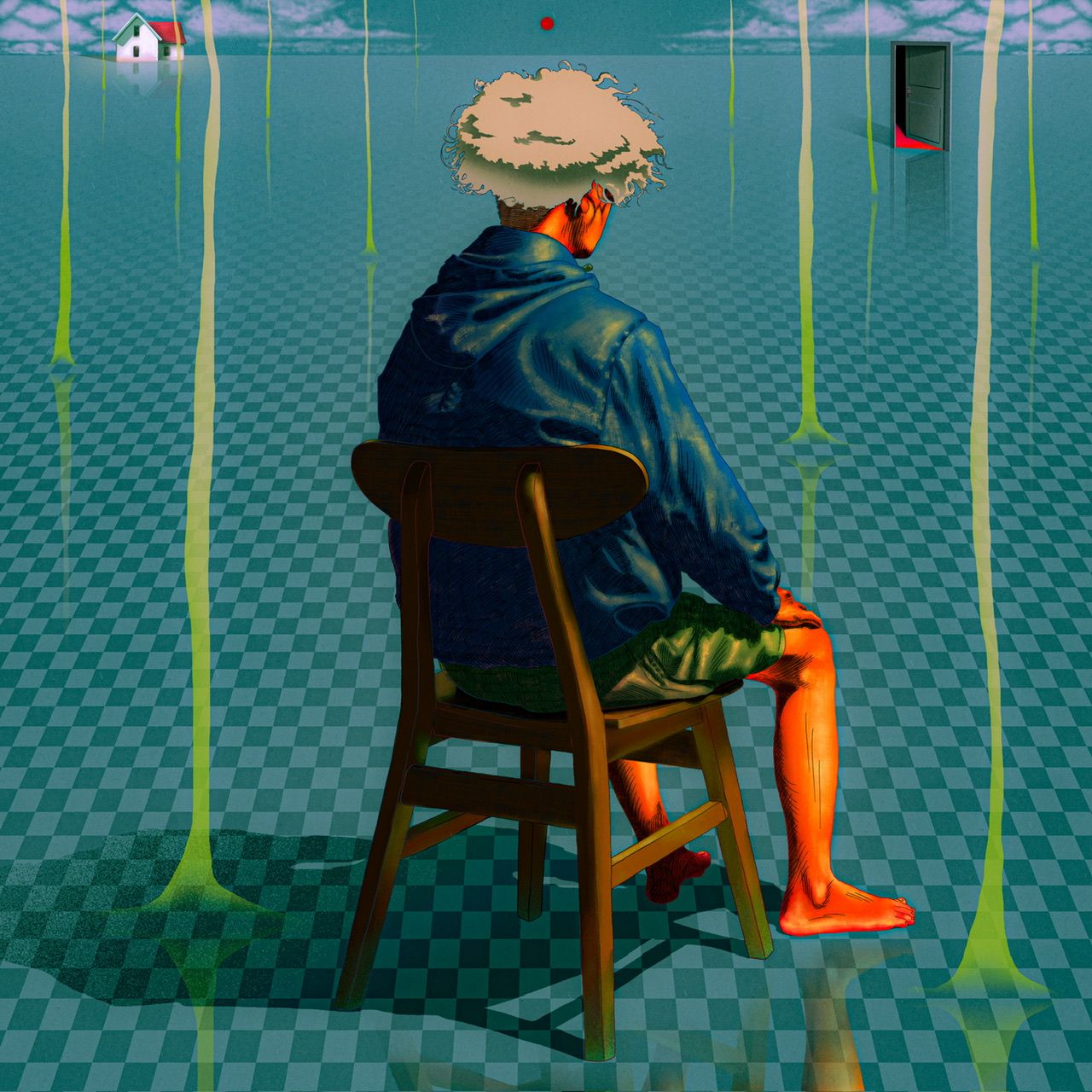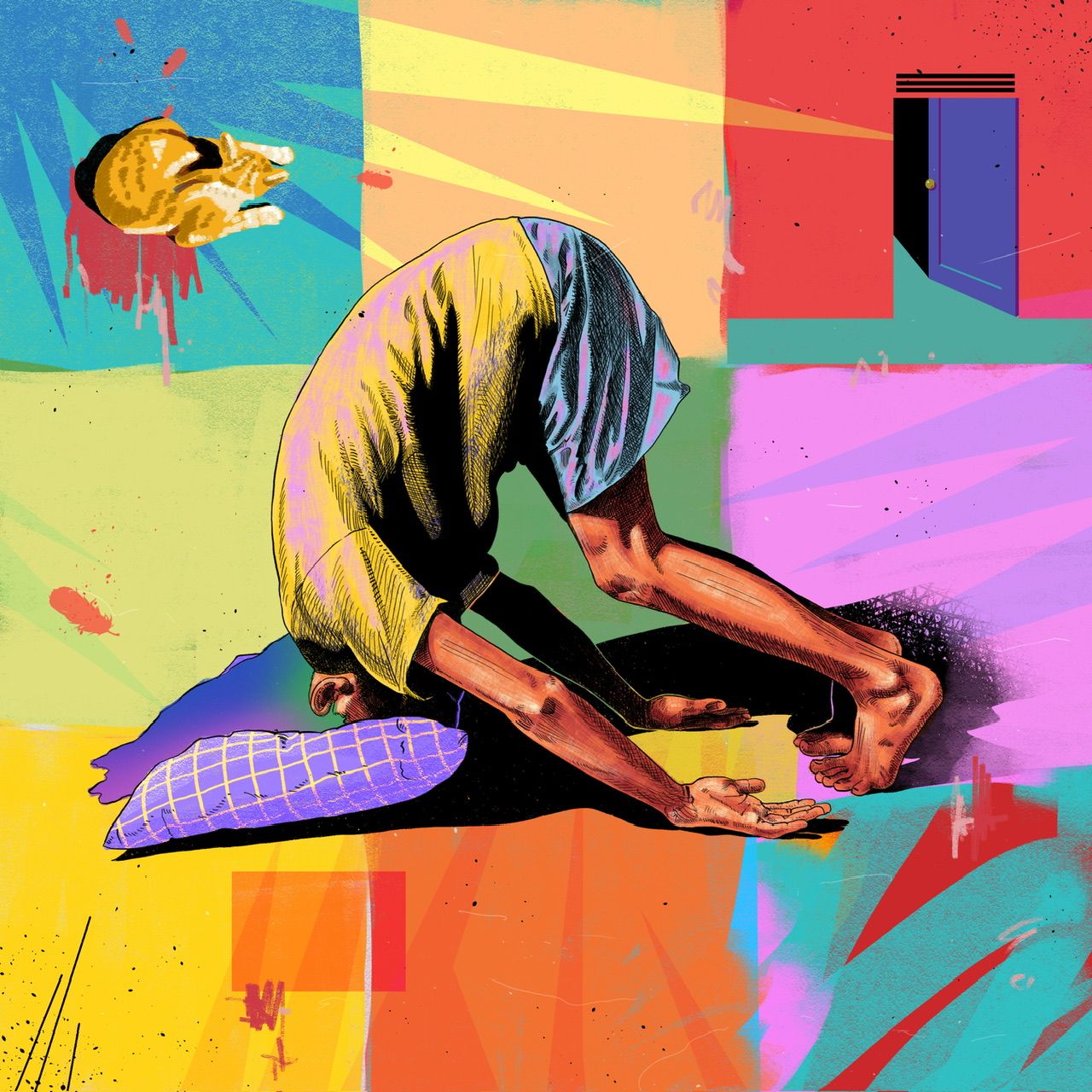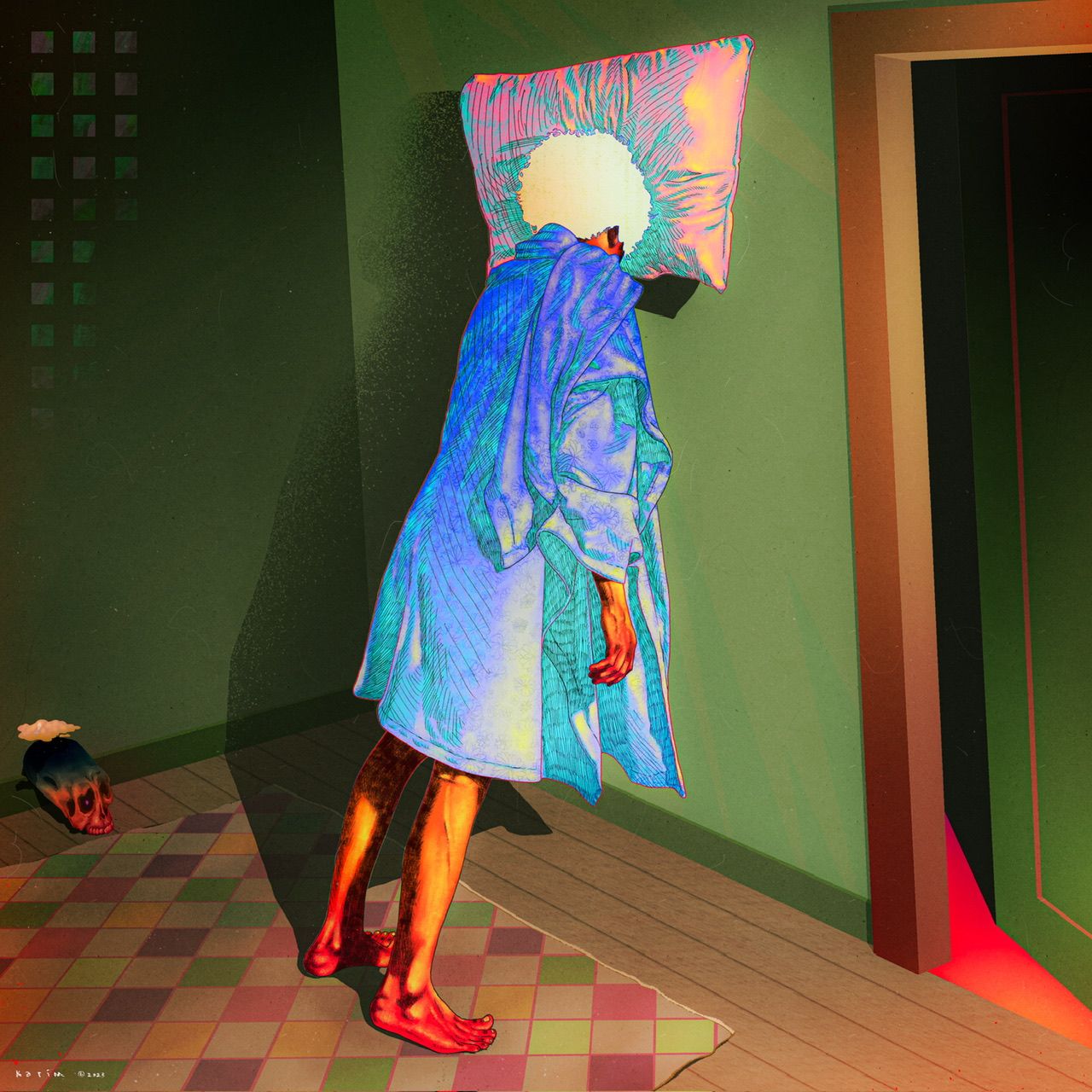 Many of the ideas in my works are drawn from my personal experiences. Experiences that are deeply embedded in my memory, both good and bad. I draw these experiences more objectively by borrowing references from other popular works such as movies, music, or books. Many of my big ideas are taken from a philosophical point of view, one of which is Albert Camus' Absurdism. In general, my works display the concept of absurdism in visual form, such as bright colors that appear accompanied by figures with strange poses that tend to be depressive as well as additional objects that have no connection with each other. These collisions produce new meanings that can be explored by the audience.