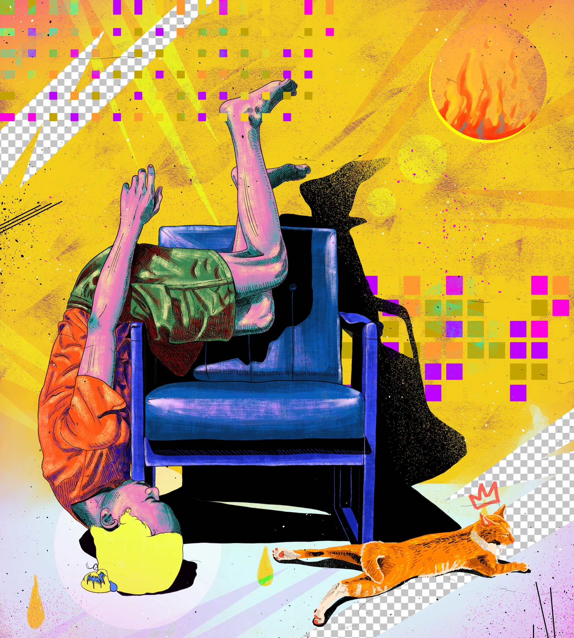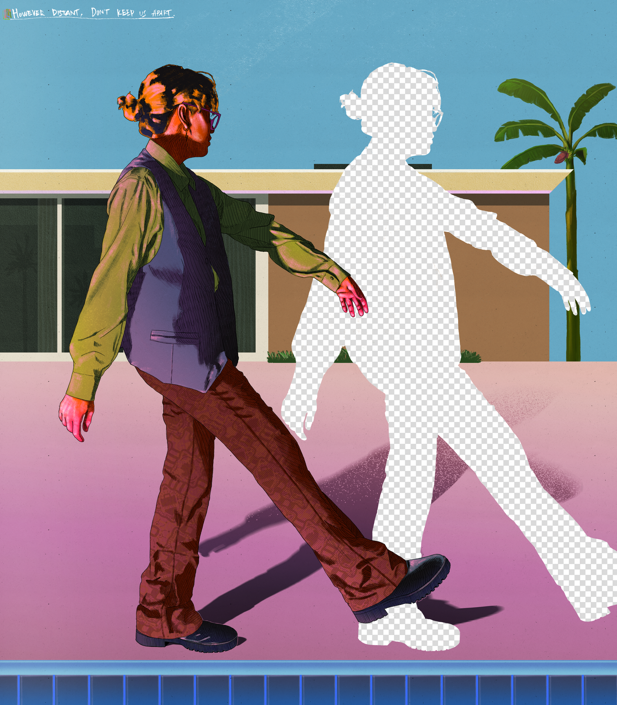 Artistically, there are several artists who have influenced my work, including Johan Barrios, David Hockney, Benzank, Basquiat, and Andy Warhol. Johan Barrios gave me a lot of inspiration in terms of posing figures, David Hockney has an interesting artistic point of view on composition and color, Benzank gave me strange ideas on figures, Basquiat with his wild expressionism, Andy Warhol who was disciplined and neat in his work.
