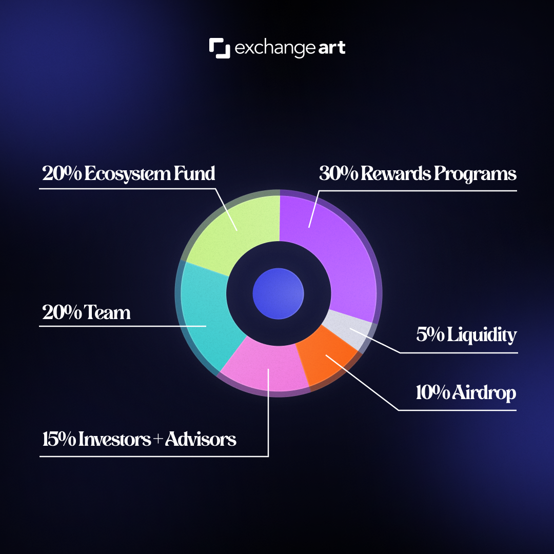 -10% of the total supply to be claimed by the Exchange Art Community, unlocked on TGE