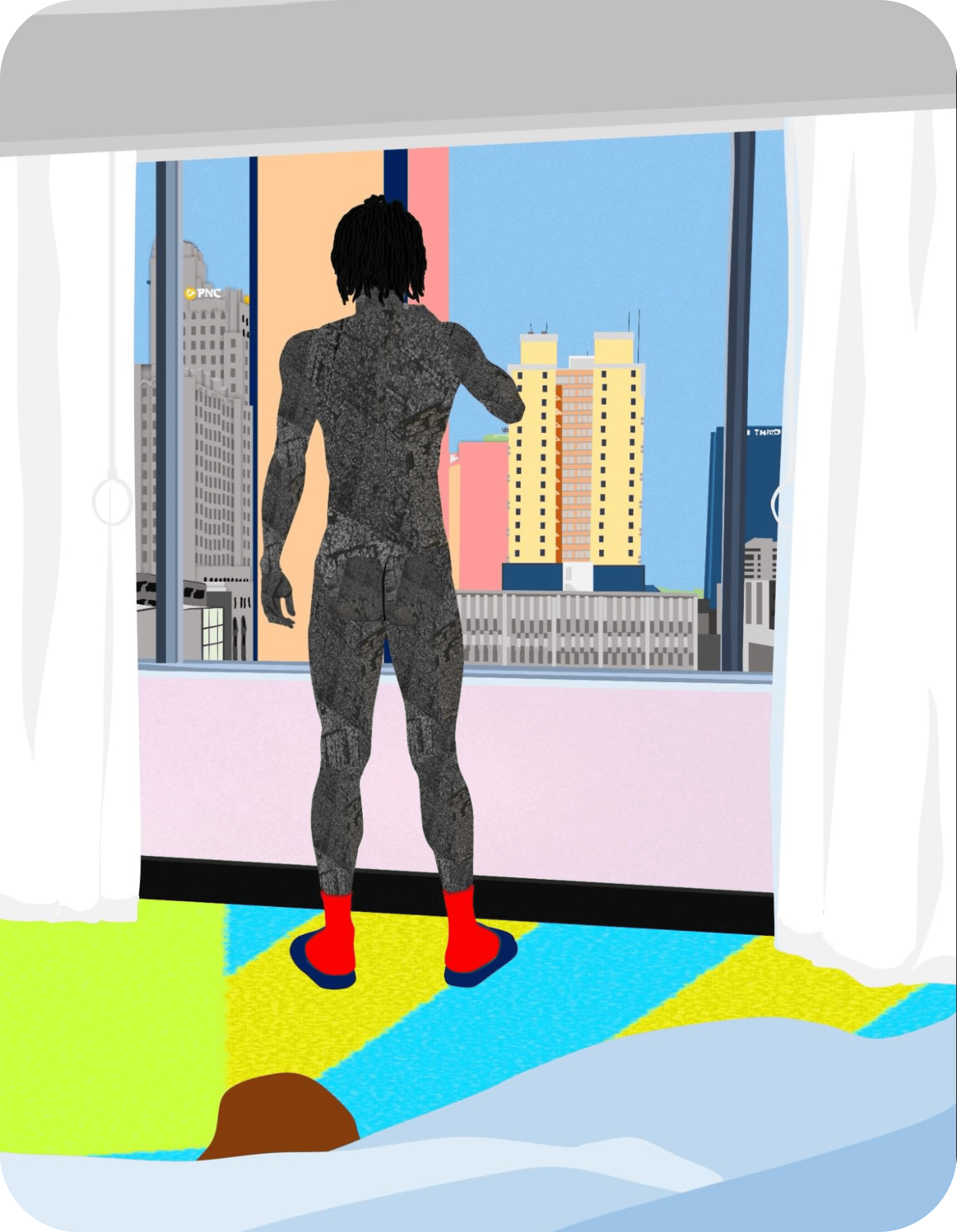 Osinachi’s process involves three main stages: vision conception, reference photo shoot and the actual painting on Microsoft Word. “For "Room: 632", it was almost the same process as most of my other works: I wanted to create a work that captures solitude on a cool morning in a hotel room and have the work also captures my affinity for nudity when I am alone; I took a selfie in front of the large window overlooking the high-rise buildings in the city, I got to work painting on Word using that selfie as my reference image, while being creative with my use of colors.” Room: 632 is largely inspired by when the artist first arrived in Toledo for his residency at the Toledo Museum of Art. His hotel room number was 632 - a room with a beautiful view of downtown Toledo. “As an artist, you want to mark significant episodes in your practice,” he adds. “My Toledo episode was refreshing, to say the least. The works I made while in the US during the residency are marked with my use of the colon in the titles.” At the end of the day, Osinachi wants people to know that ‘Room: 632’ is about self in relation to others. “I want viewers to understand that "Room: 632" is about preparing oneself in isolation (as symbolized by the nudity) before leaving the room, fully clothed to meet the world head-on.”