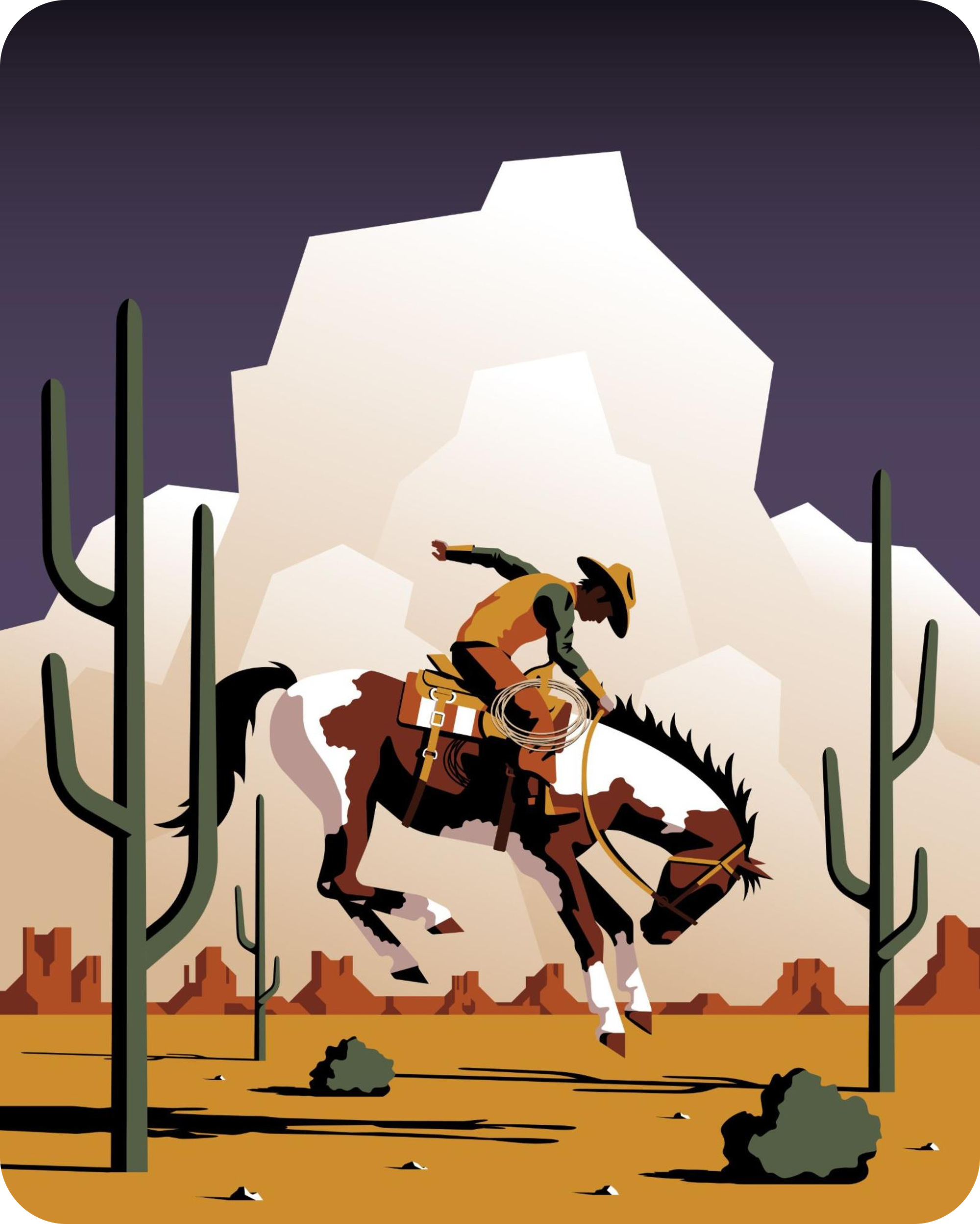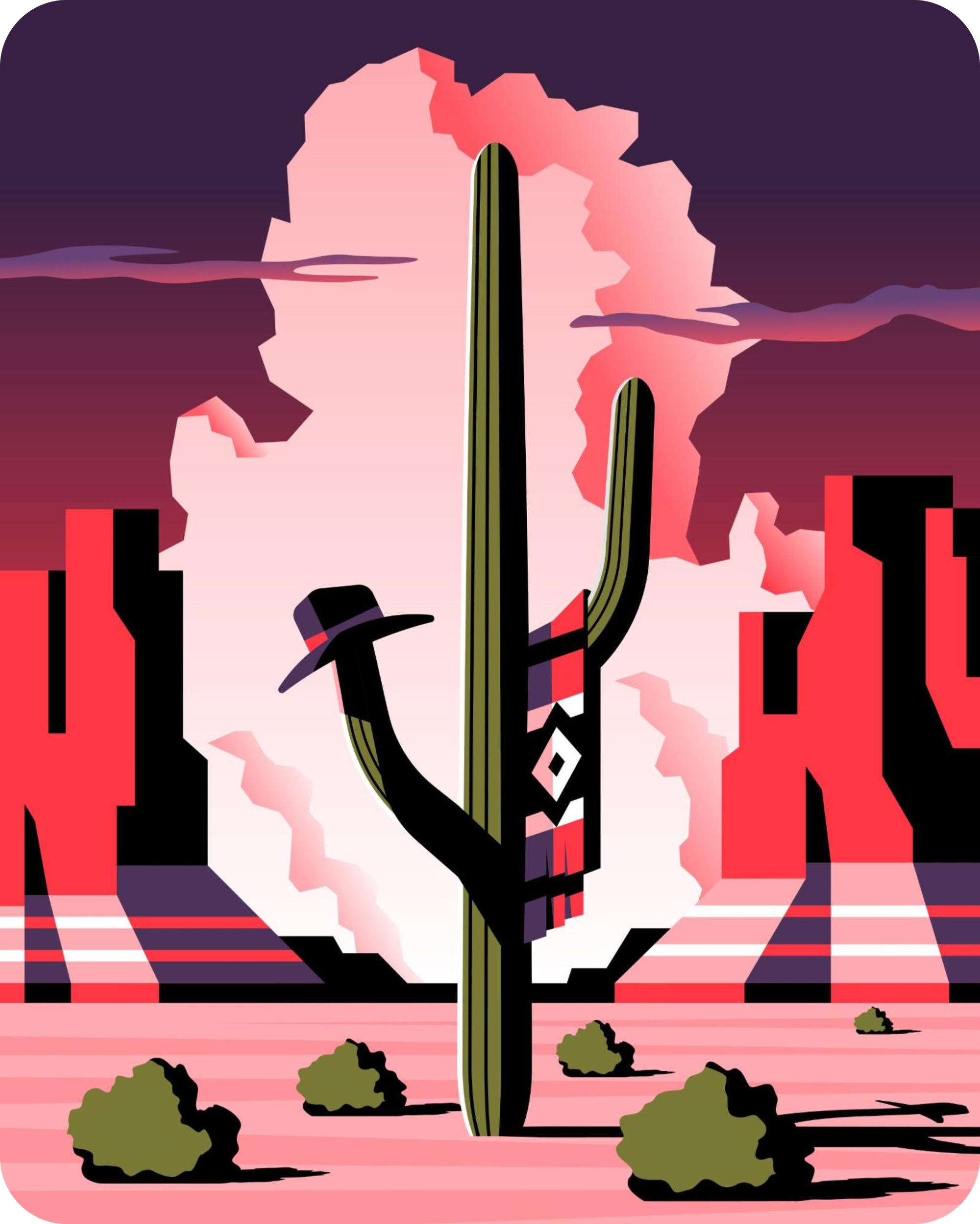Jeremey Booth’s journey into art didn’t begin with the rich Western backdrop that so many are familiar with but bears many parallels to this era of free-spirited individuals. Like many of the digital frontiersmen of his time, Booth’s digital art exploration began with an illegal copy of Photoshop and a desire to learn. Soon after everything changed Booth recalls, “Once I got a hold of Adobe Illustrator everything changed for me. I immediately fell in love with vector illustration and became solely focused on that ever since.” Booth’s passion and drive for vector illustration led him to a successful commercial art career that spans over 10+ years with clients to the likes of Apple, Warby Parker, Slack, and more.