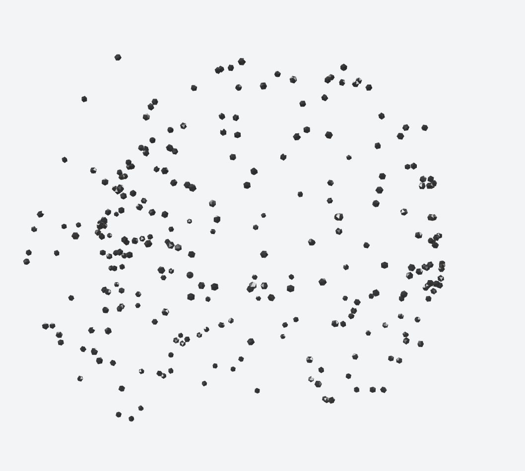 This work by Fubby14 is entirely algorithmically generated, from the number of parts of the sculpture to the patterns the parts are moving in. In a virtual gallery, the viewer can literally stand in the middle of the piece, watching it move over and around your avatar. Fascinating!