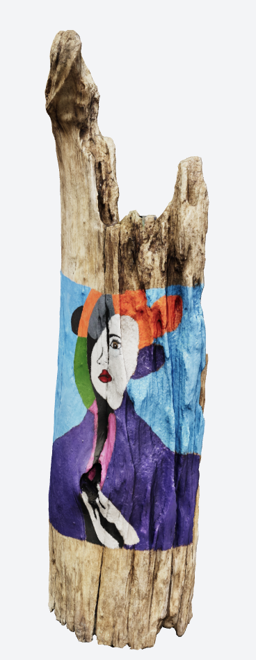 Sir Wayne Nooten’s first GLB file combines the natural with the digital. The artist found a piece of driftwood and used it as a base to paint an acrylic portrait of a Bulgarian woman. Moving the piece into the digital realm, he then scanned the piece using LiDAR technology and converted the file to GLB. A piece of painted wood will now forever live on digitally!