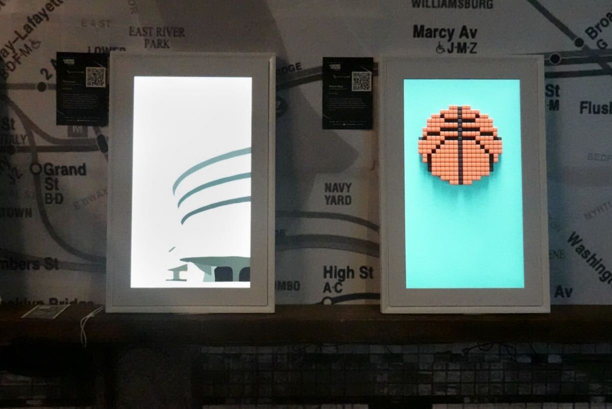 Douglas McCurdy is a conceptual artist who focuses on basketball hoops. Can’t Dunk is a fascinating series that combines physical sculptures with digital art, challenging the perception of ordinary objects. The works exist as physical sculptures molded from basketball hoops into innovative forms. This series also exists as digital editions, and the artist will create physical collectible miniatures of these objects. We were thrilled to display one of the physical sculptures while the digital editions were on view in the Meural frames.