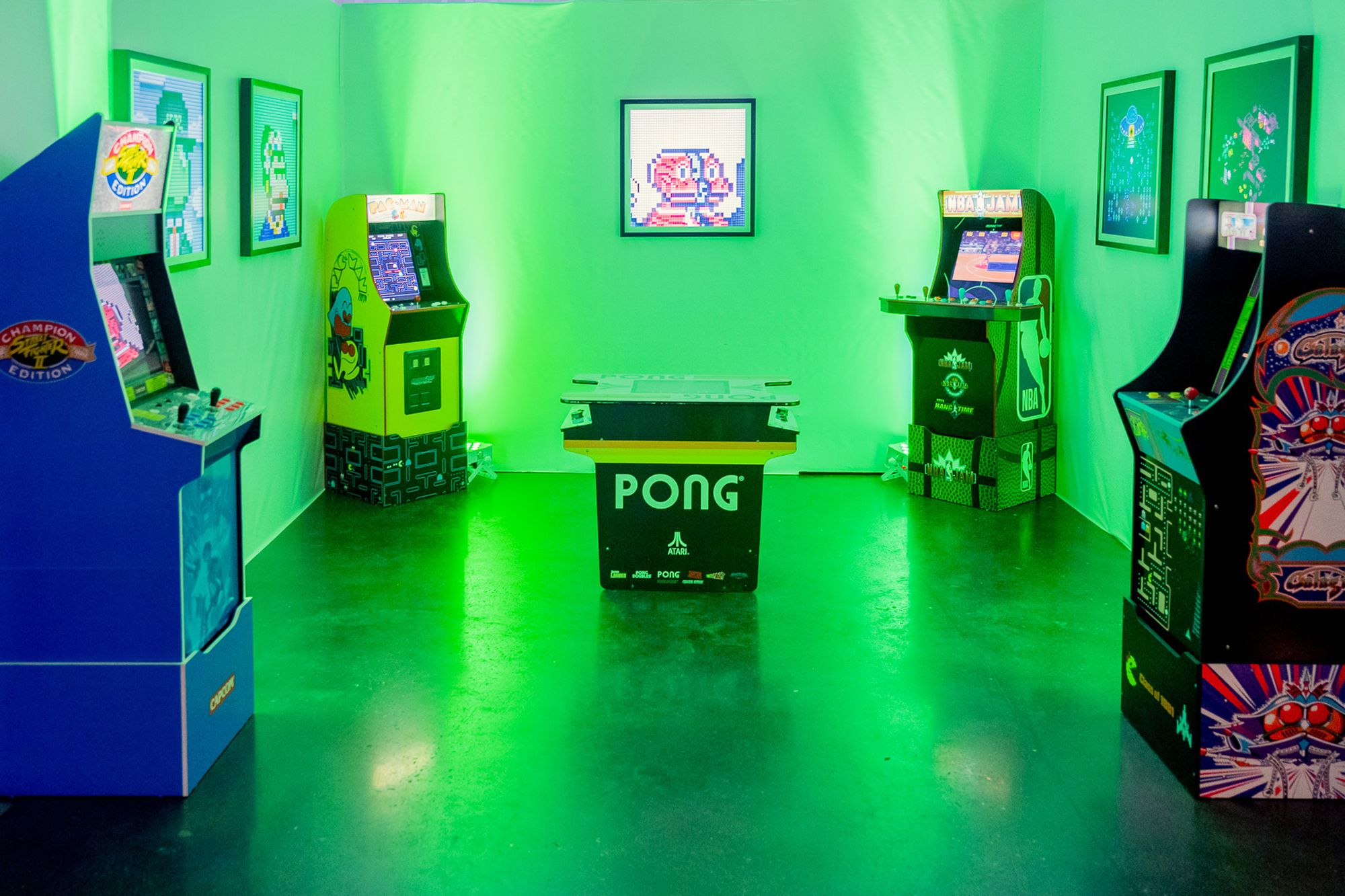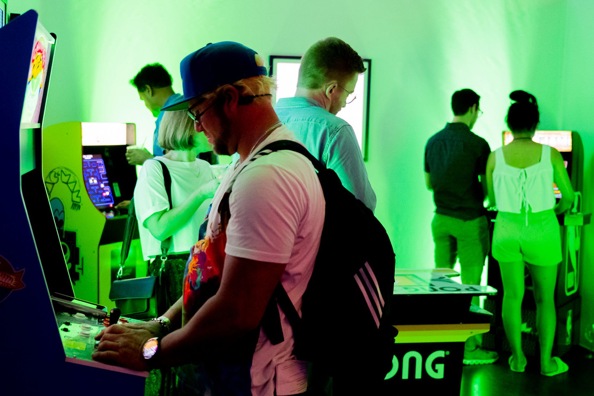 We displayed animated pixel art by Adam Ape and Zen0 in an arcade area and invited the viewer to engage with the installation by playing vintage games like Packman and Pong!