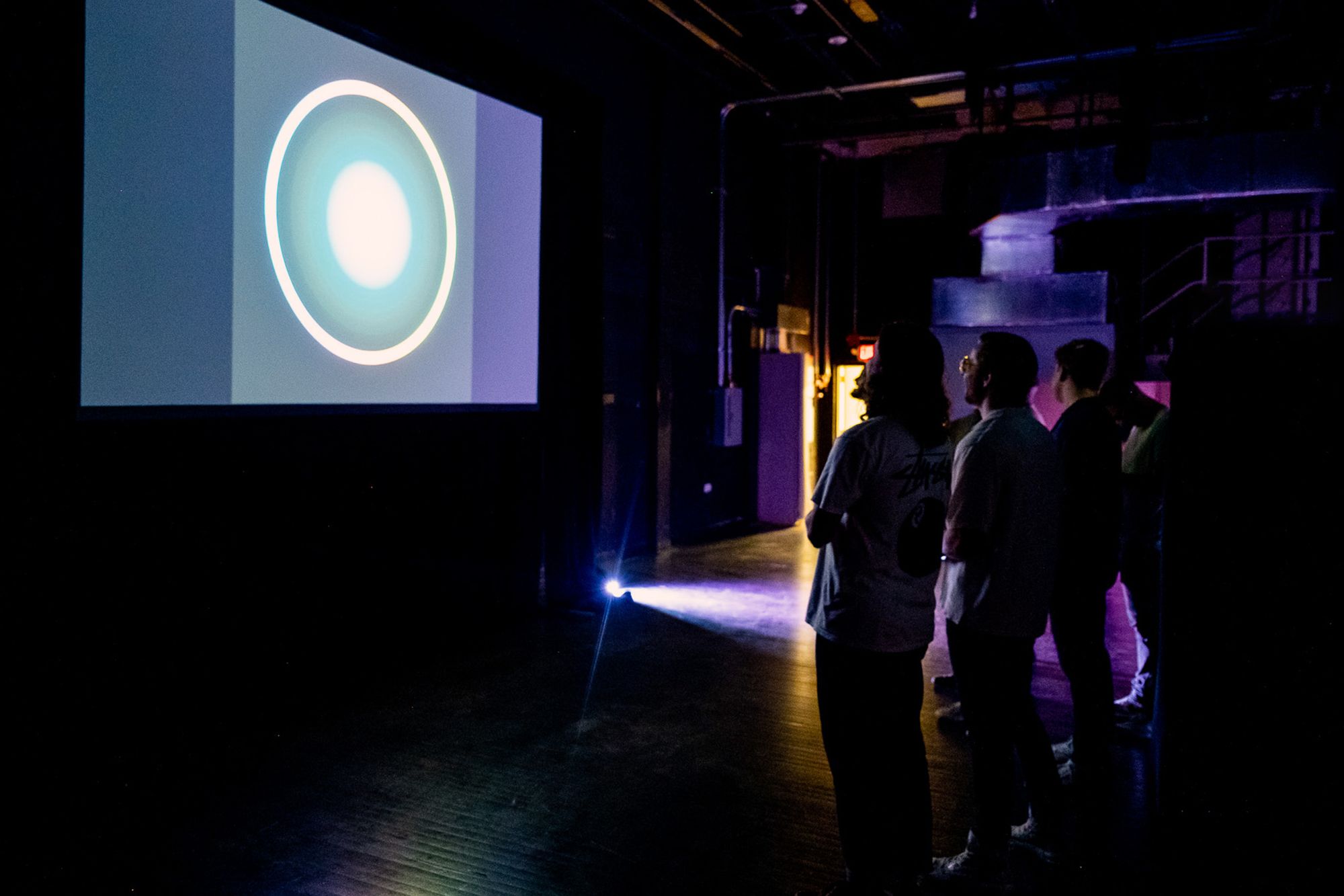 This installation invited viewers to experience an animated original oil painting by Martin L. Benson. This meditative artwork was transcendent and otherworldly at this scale, enveloping the viewers.