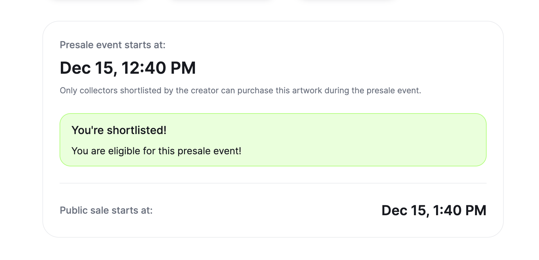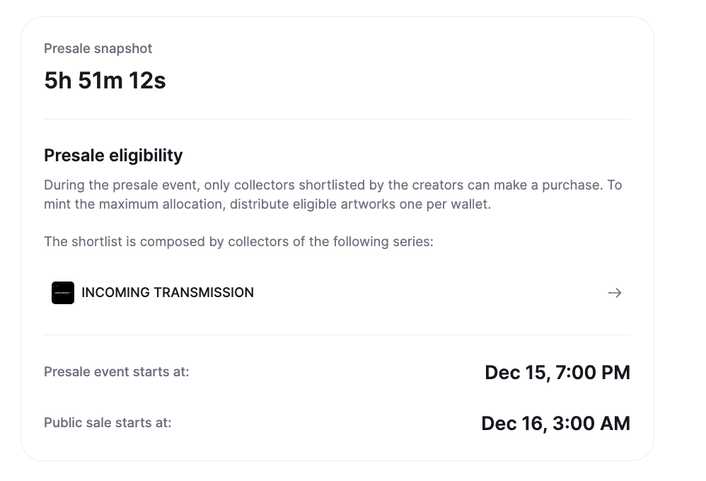 When collectors go to your edition sale, they will be presented with a message indicating when the snapshot is going to take place, and which is the criteria for it.