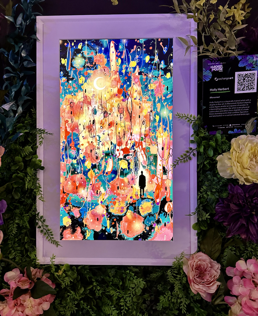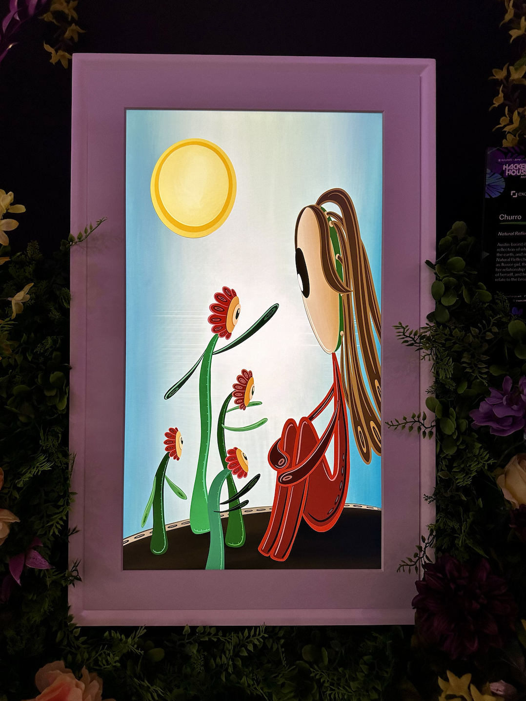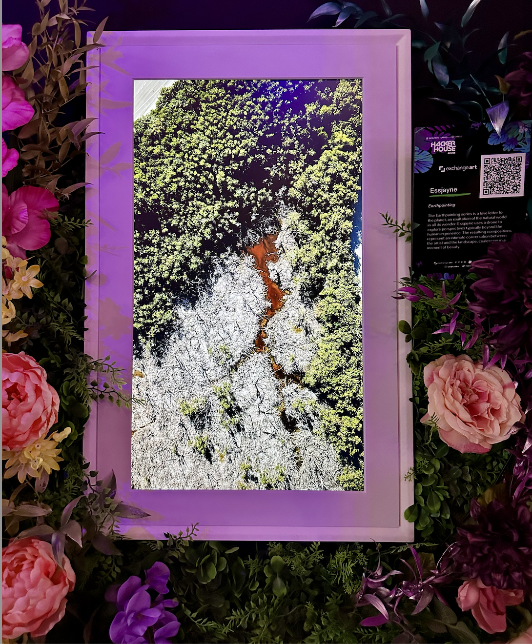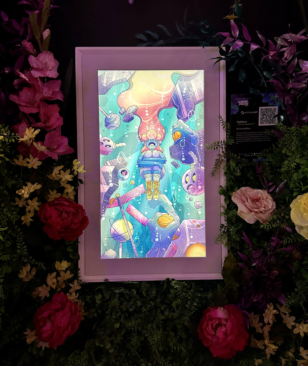 At the Sol.Ladies Hacker House, taking place in Austin from April 20 to April 24, we are thrilled to curate the Exchange Art Gallery! This Hacker House, organized by Solana x Jump x Circle, is focused on amplifying women's voices and experiences. The overall theme of the Hacker House is nature, so we are displaying artwork by female artists that consider the natural world. The artwork is beautifully displayed on Meural digital frames in a floral inspired installation.