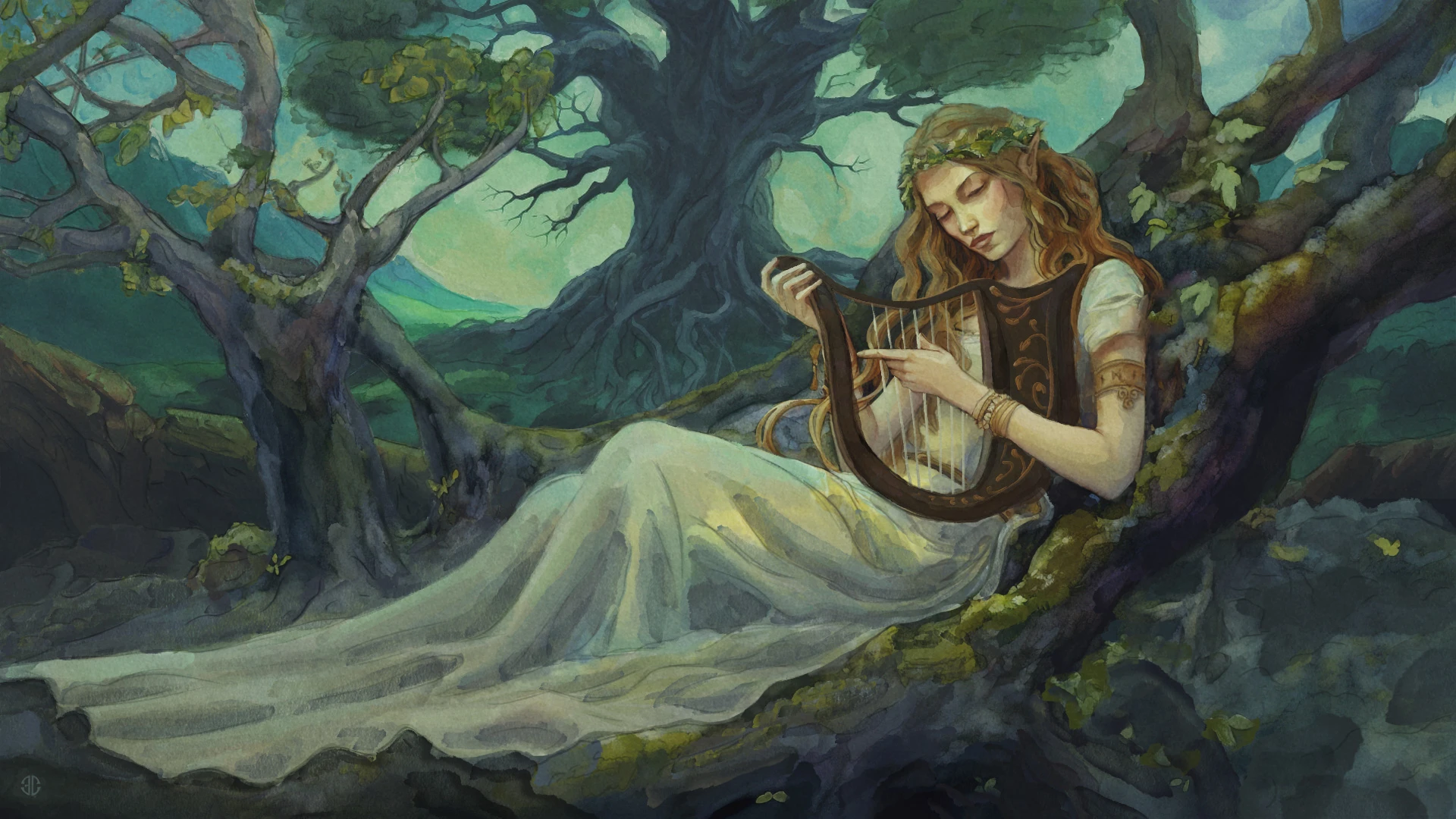 Referenced by and tribute to one of my favourite painting by the queen of watercolors Rebecca Guay; her Elvish Lyrist.''