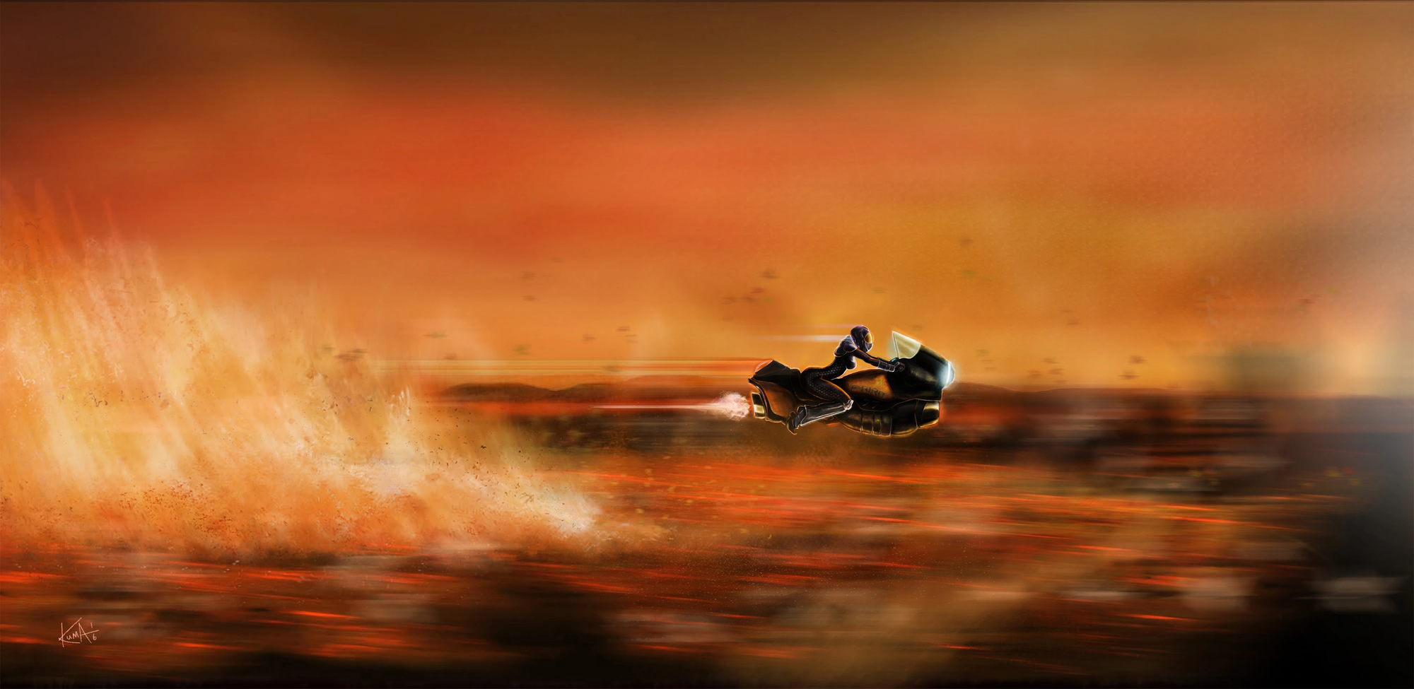 Concept art is not limited to one genre or style. It can encompass a wide range of themes, from fantasy and science fiction to historical and realistic settings. In this case, this artwork made by Omore we can take a look on a futuristic scene that creates very strong motion visual impact.