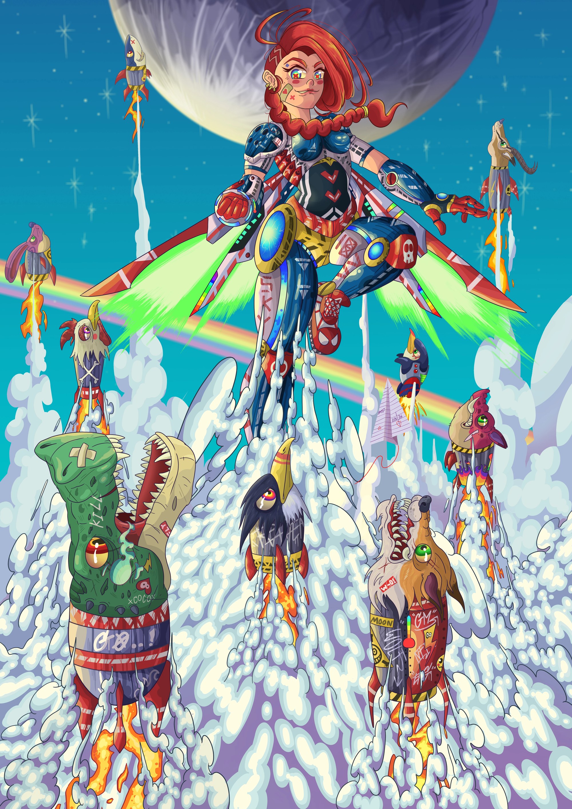 Concept artists develop detailed character designs, including the protagonist, antagonists, non-playable characters (NPCs), and creatures. These designs often go through various iterations to ensure they fit the game's narrative and mechanics. In this case, the protagonist is Rocket Queen and she looks incredible!