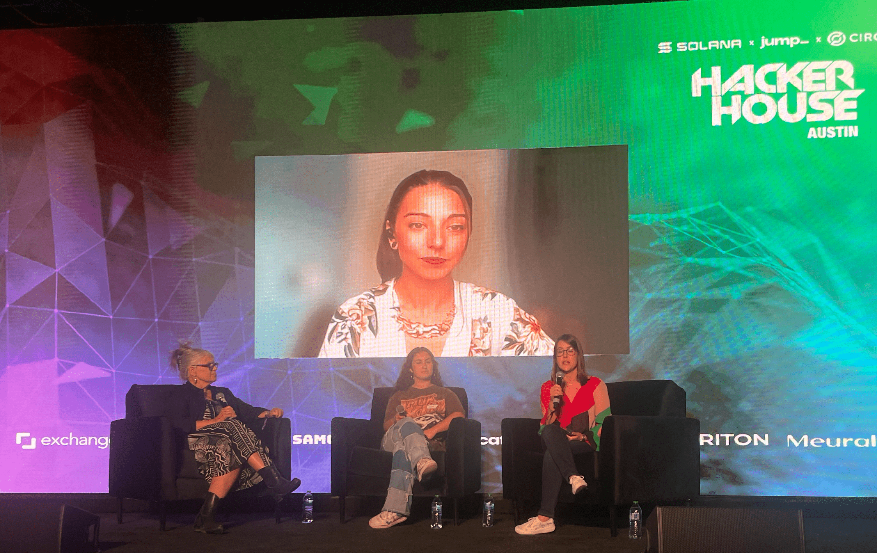 We also organized a panel about digital art with Churro, Essjayne, and Symbolic Artist, whose work was on view in the gallery. They discussed their experience as female digital artists on Solana and the significance of nature in their work. We loved seeing so much support for women in web3!