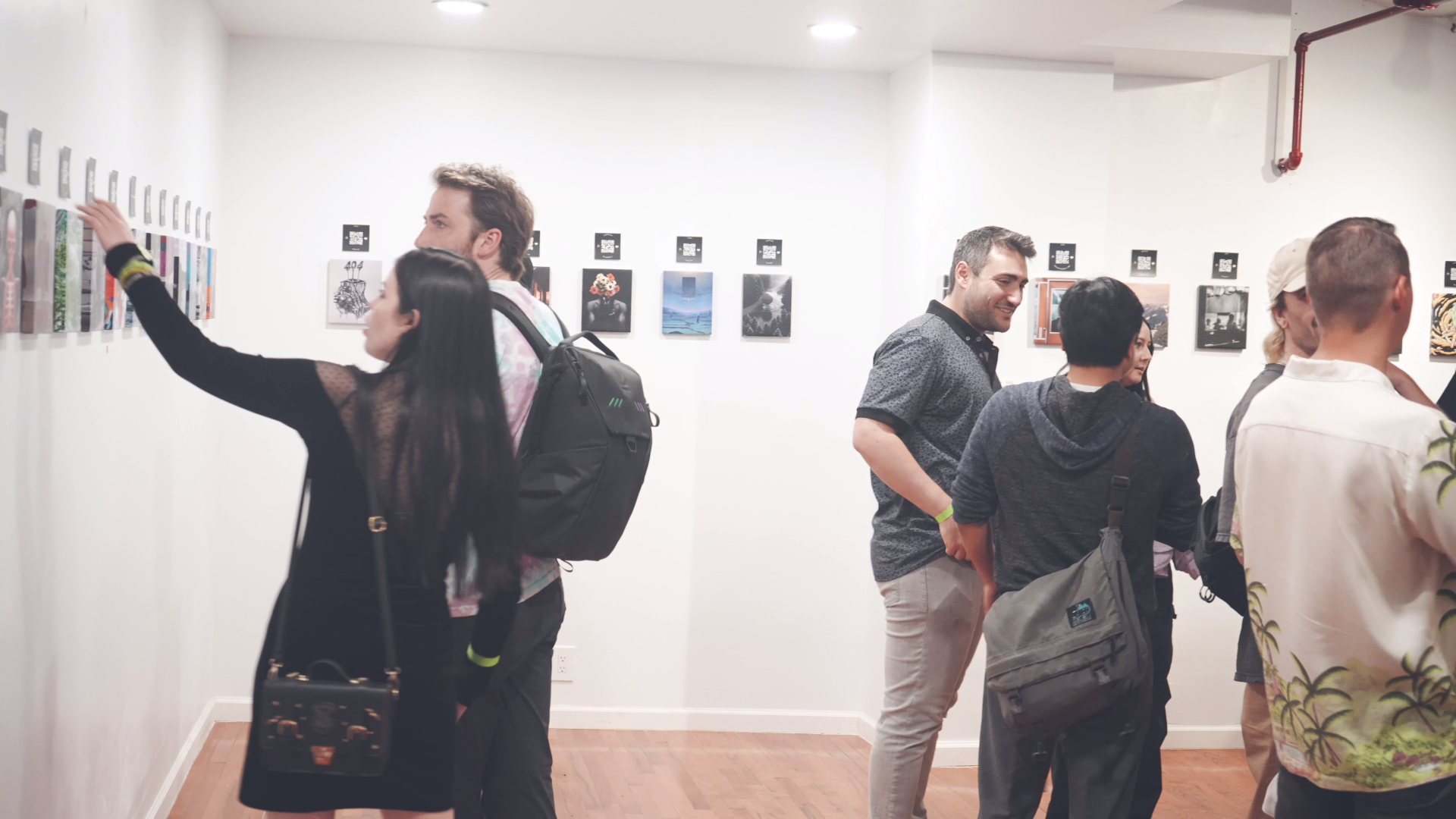 J.T. and partner PenguLoveNFT brought together 50 artists of varying styles, popularity, and location from the Solana ecosystem. The works were available for purchase on Exchange Art, and we were delighted that collectors purchased artwork in person at the intimate event!