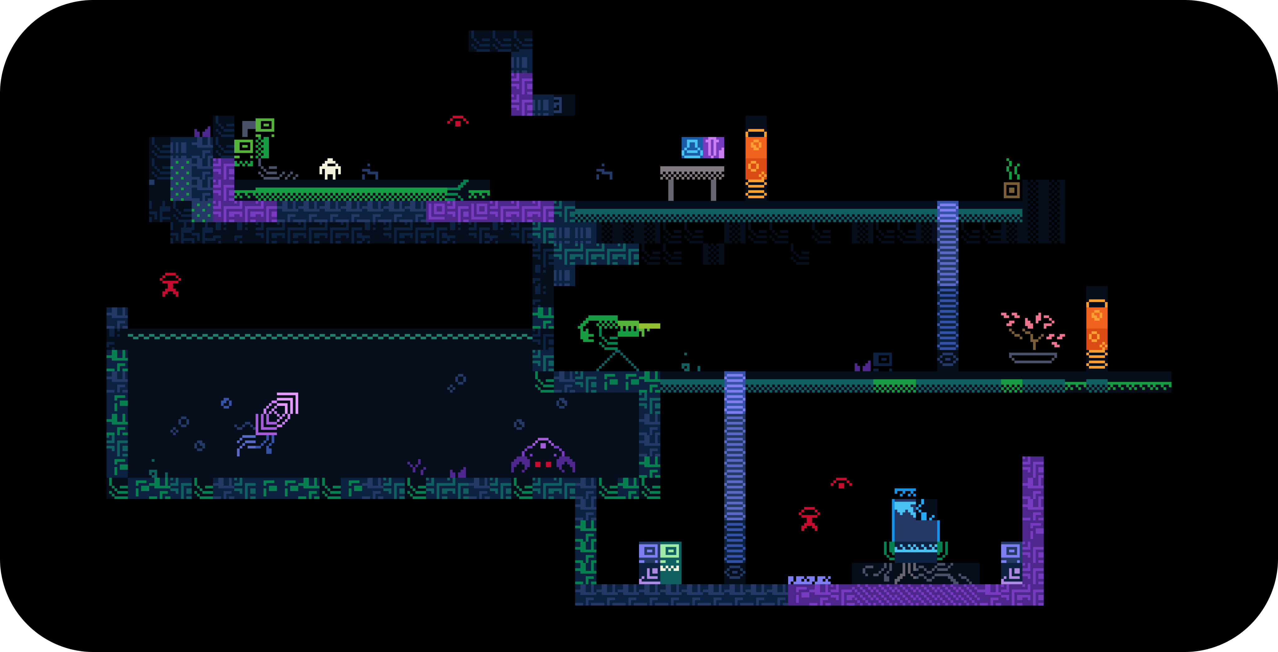 Meet Glyphscapes, Wave 1 is launching July 13 on Code Canvas! Glyphscapes is a long-form algorithmic art project consisting of 2048 unique maps generated from a single set of primitive, abstract tiles. Glyphscapes has been developed over the past 8 months in partnership with IceRain and is created entirely from code and on the Solana blockchain, every Glyphscape will be generated live from a unique seed at the time of mint. Each grid cell consists of only a 1-bit sprite, but collectively they form a diverse universe of unique terrains, creatures, and curious artifacts