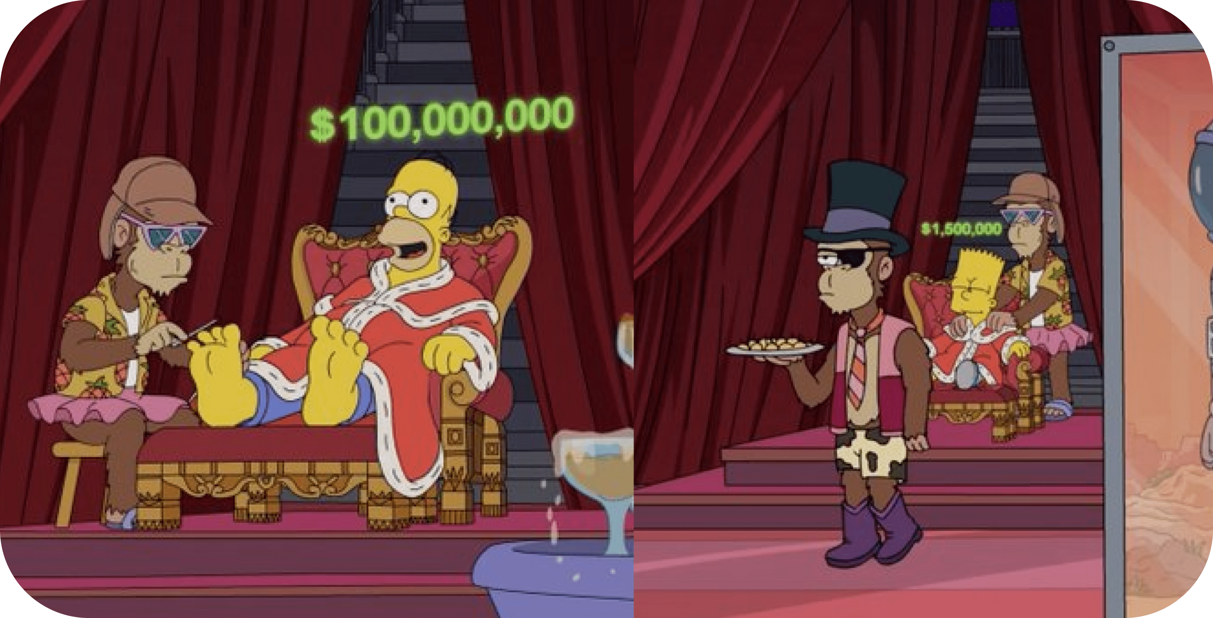 Look Mom, we’re on TV again! NFTs have hit the mainstream once again, this time portrayed by the iconic TV series The Simpsons. While comical and satirical many were quick to point out the similarities between the digital art featured in the episode and that of popular NFT projects. The creators are no strangers to mocking the crypto and NFT space and it always comes with a massive buzz.
