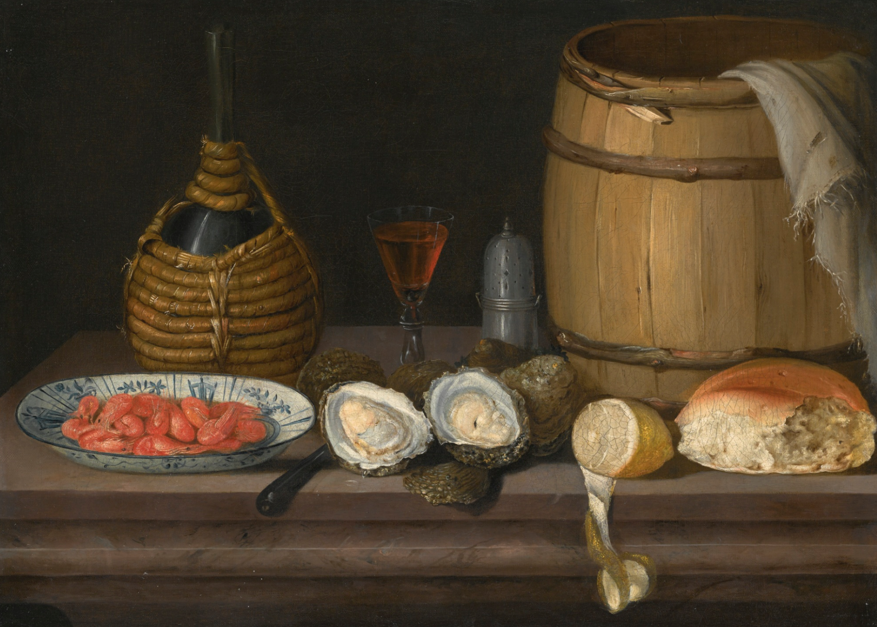 Oysters have been symbols of desire since ancient times, associated with delicacy, aphrodisiacs, and even divine origins. The painting contrasts uneaten oysters symbolizing indulgence with a neglected bread roll symbolizing spirituality.